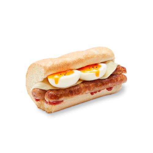 Start the day off with this mega combination of sausage and bacon, paired with a poached egg and melted cheese.